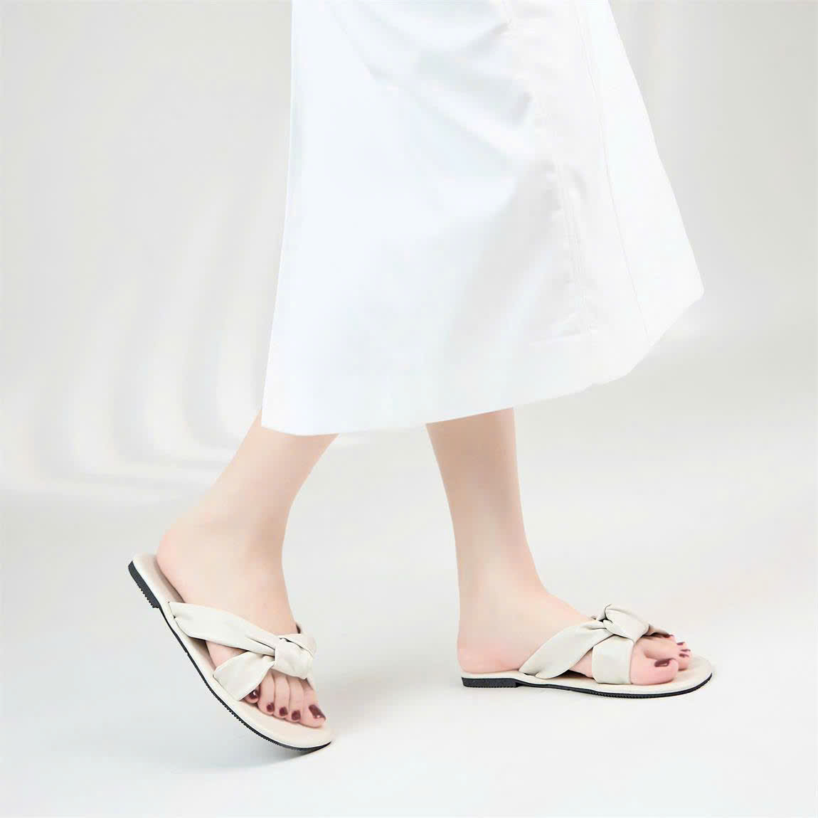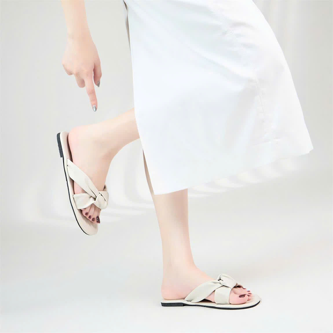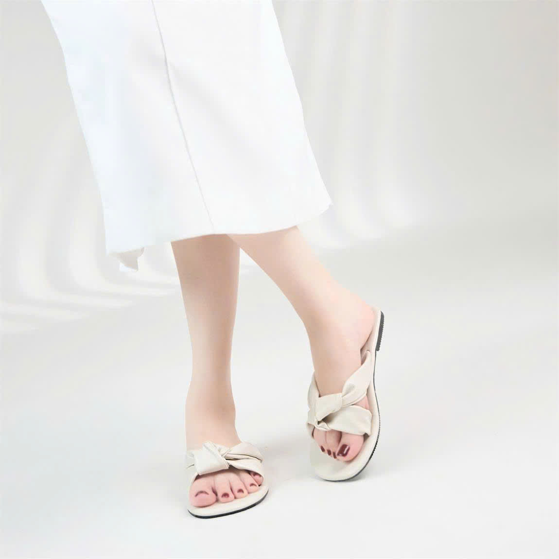 Dép Moonn N23 – Đế bệt thời trang, thắt nơ nữ tính