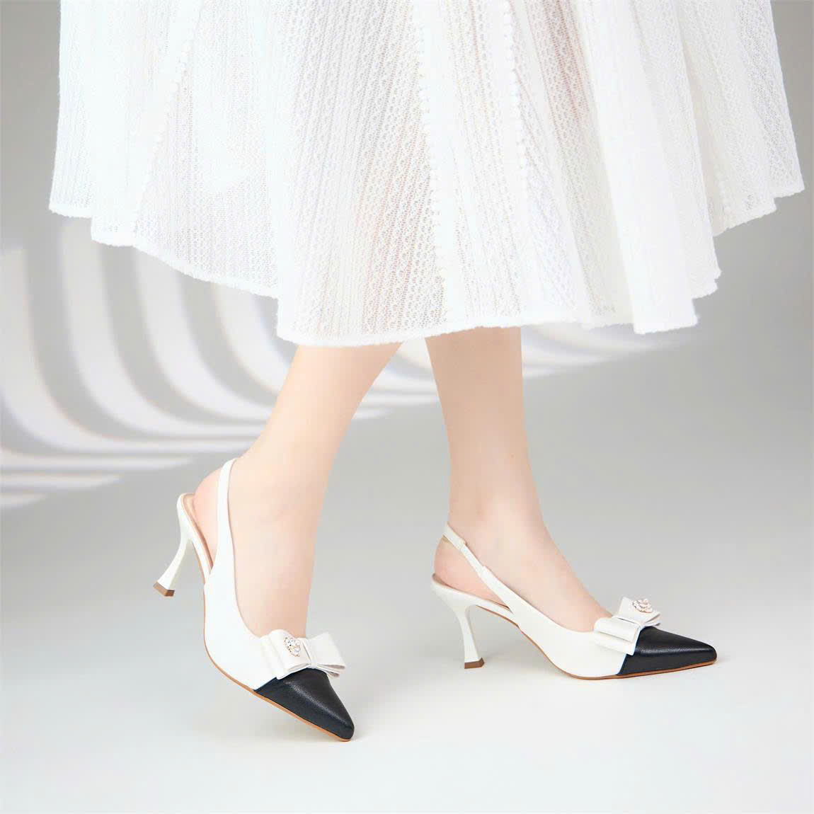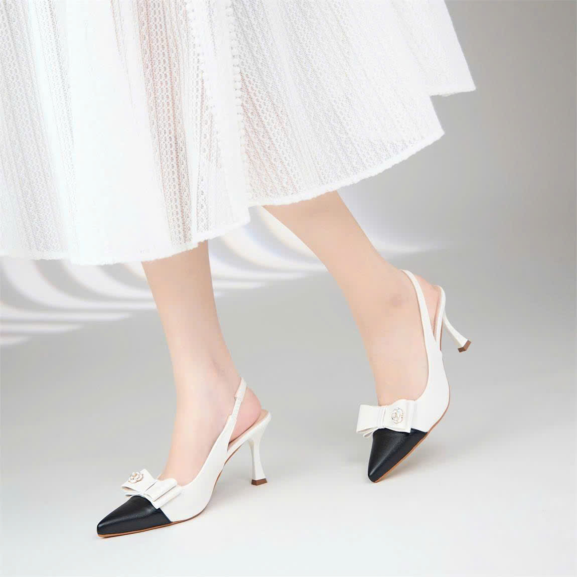 Giày cao gót dáng Slingback bít mũi đính nơ