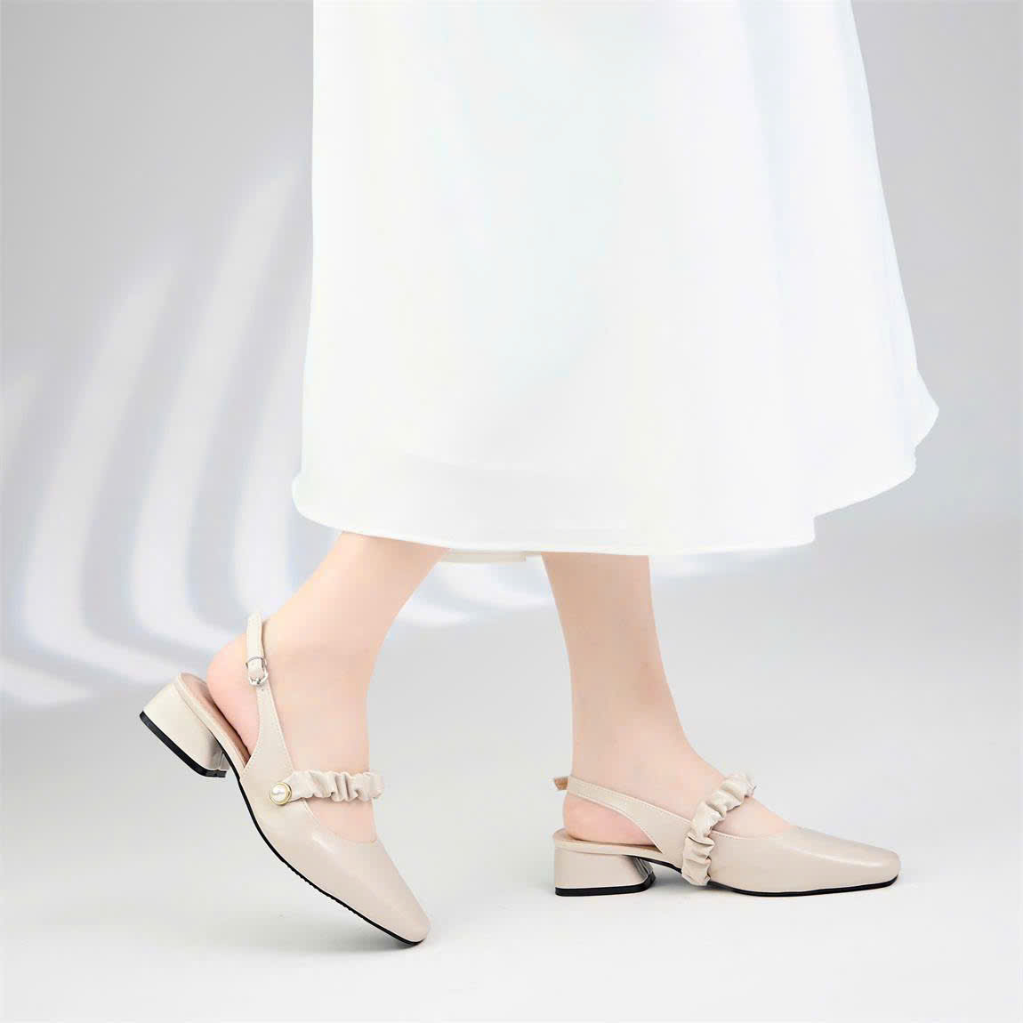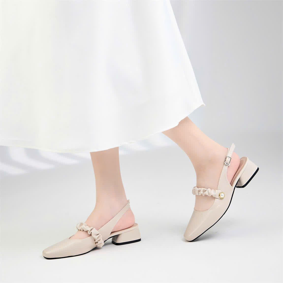Giày cao gót nữ Moonn N12 màu kem mũi vuông – thanh lịch dễ phối đồ