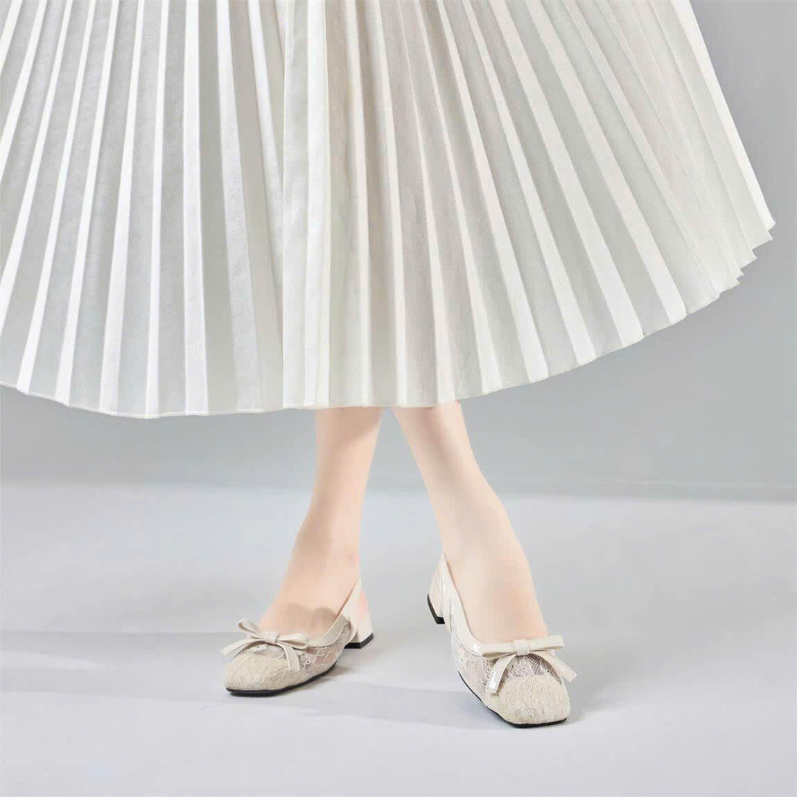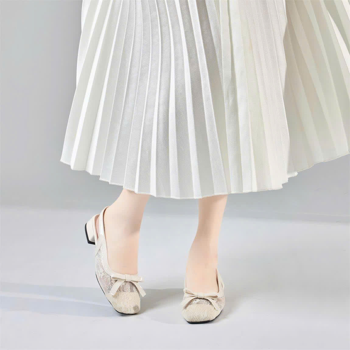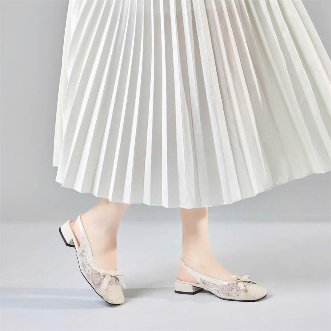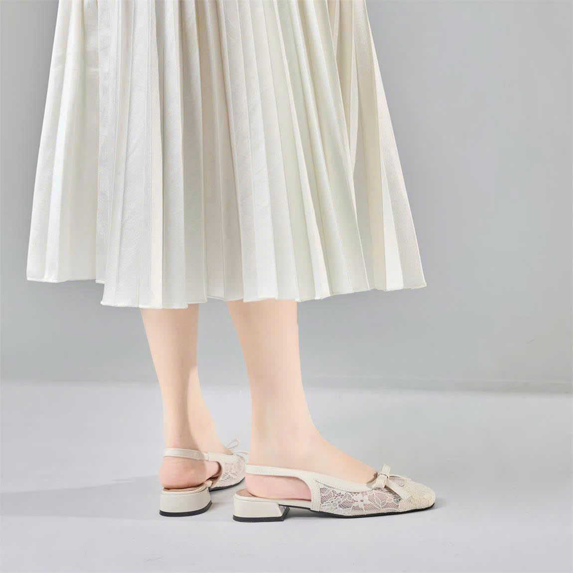 Kiểu dáng: Giày cao gót mũi vuông, Slingback phối ren đính nơ